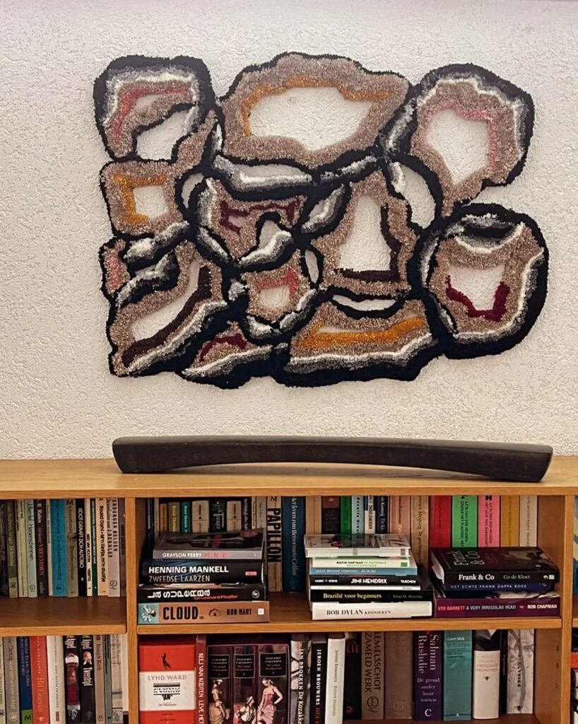 Hier ziet u een selectie van handgemaakte wandtapijten die de creativiteit en vakmanschap van Corine Baas weerspiegelen.